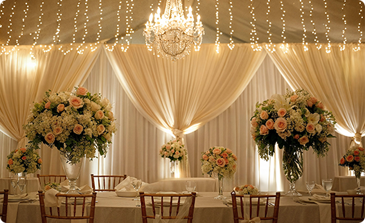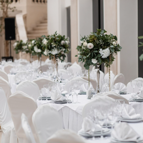 توفر القاعة خيارات مرنة في ترتيب الطاولات والكراسي بحسب طبيعة المناسبة